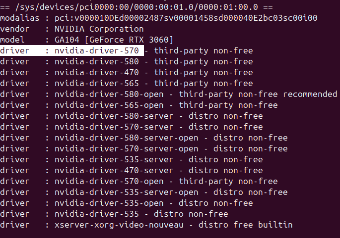 Install latest/recommended driver version, I’m using NVIDIA RTX 3060 graphics card so using the driver nvidia-driver-570 :