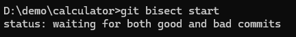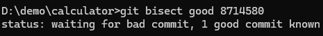 Next we need to give one known good commit where the feature(additon) worked and bad commit. We are going to use use the first commit for this demo (You can give previous good release commit ID)
