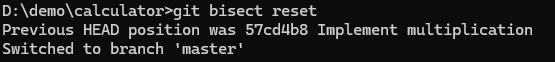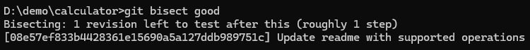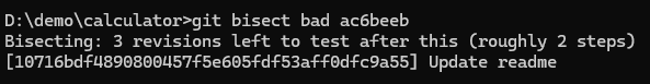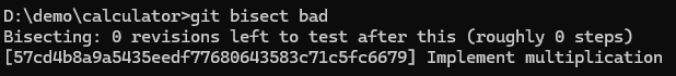 Suppose we have simple calculator app with following commits. (We introduced a bug in commit 57cd4b8 for this demo)